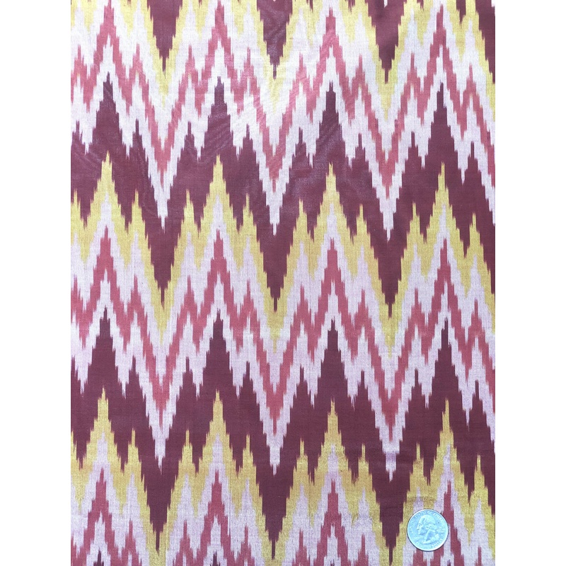 The Cotton Silk Ikat Fabric is a blended hand woven fabric, which has been hand dyed through a process similar to tie-dye for its pleasing effect. The word ikat comes from the Malaysian world “mengikat,” which means to tie or bind, and refers to a textile dyeing technique in which the threads are dyed before the fabric is weaved. The elaborate, multicolored patterns constructed through this ancient resist dyeing process gives the Ikat fabric its distinctive “blurred” appearance. The fabric is sheer and flowy. The fabric is sold by the Yard, and measures 44 inches in width.