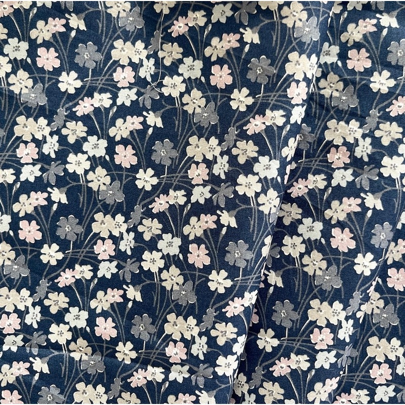 A luxurious cotton poplin from the iconic English company, Liberty of London - a tad heavier than the traditional cotton lawn, Buttercup is a crisp print featuring wee flowers in shades of blush and beige on a navy blue background.The high thread count and