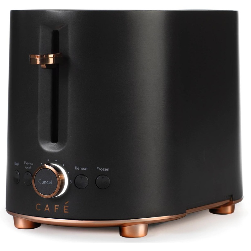 Caf Express finish toaster features 4 pre-set functions, 2 slice capacity and 8 shades of darkness.