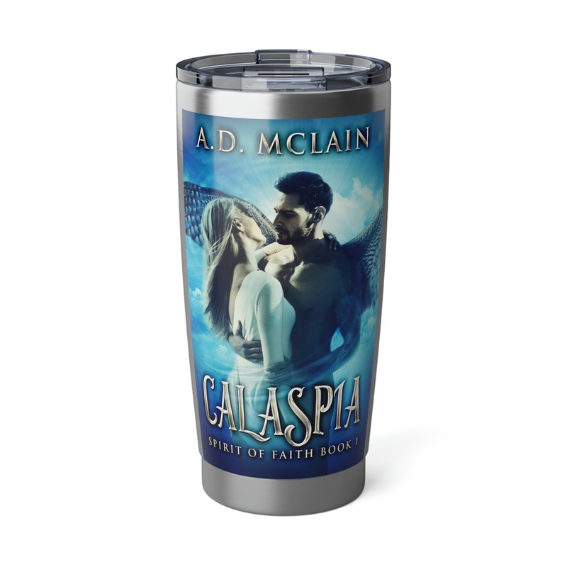 Minimize your plastic footprint with style. This tumbler fits perfectly into car cup holders, and the rubber gasket makes it spill-resistant on bumpier roads. The double-wall insulation makes sure drinks stay at the right temperature until the next pit stop. The cover art in this 20 oz tumbler is from A.D. Mclain’s book, Calaspia.