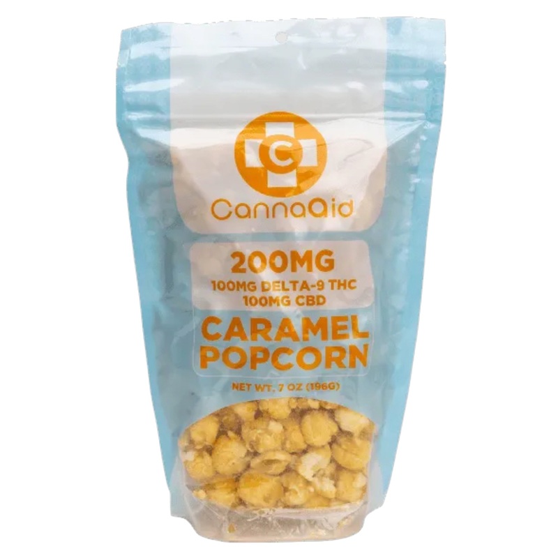 200mg of Delta 9 and CBD Caramel Popcorn! 200mg per package 100mg Delta 9 100mg CBD Caramel flavor Fast acting Description Get ready for a snack that's out of this world! With CannaAid Delta 9 + CBD Caramel Popcorn, you'll get the perfect combination of 20