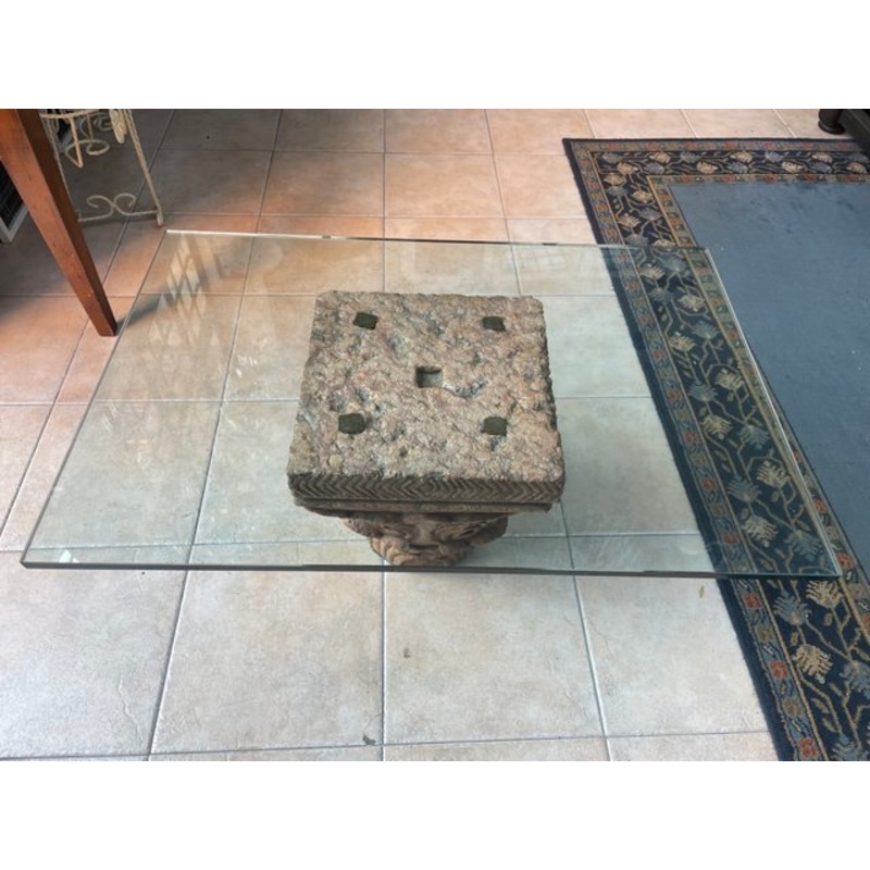 Beautiful coffee table made up of a capital-shaped pink granite base, crystal top. Piece from the 80s, excellent crystal top, the capital has a scratch on one corner. Very very heavy piece. Design Period 1980 to 1989 Production Period 1980 to 1989 Country
