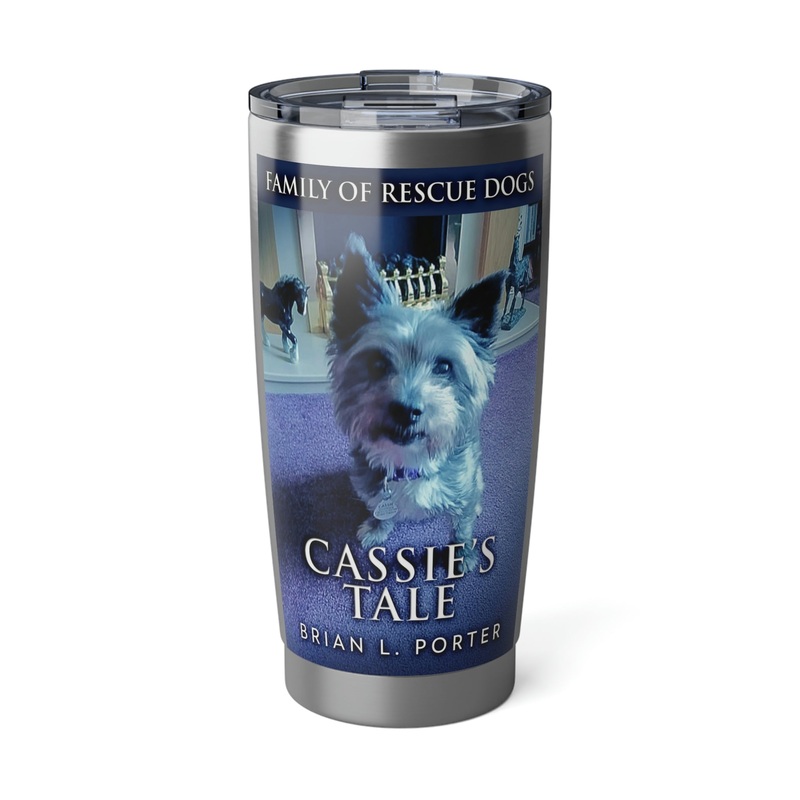 Minimize your plastic footprint with style. This tumbler fits perfectly into car cup holders, and the rubber gasket makes it spill-resistant on bumpier roads. The double-wall insulation makes sure drinks stay at the right temperature until the next pit stop. The cover art in this 20 oz tumbler is from Brian L. Porter’s book, Cassie’s Tale.