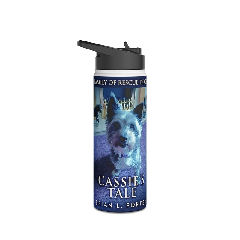 Quench your thirst in style with this 18oz stainless steel water bottle featuring a double-wall stainless steel build that keeps your drinks frosty for 24h and soothingly hot for 12h. This BPA-free, steel water bottle comes with a twist-on lid for easy sipping, making it excellent for daily use at work, at college, in the car, and beyond. The cover art in this water bottle is from Brian L. Porter’s book, Cassie’s Tale.