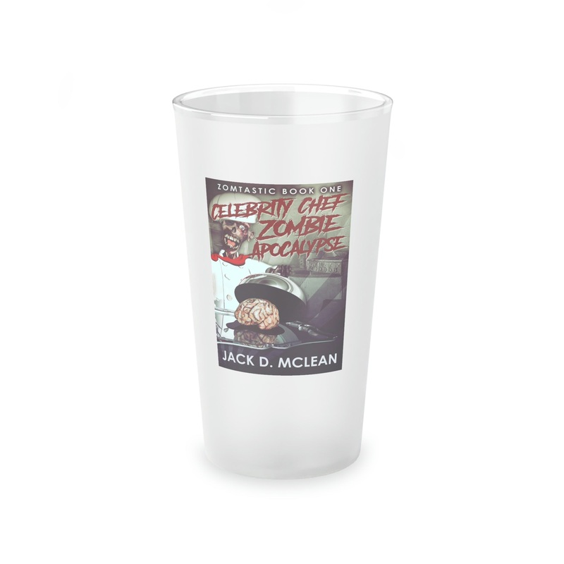 This frosted matte finish pint glass is versatile and dishwasher-safe. The cover art in this pint glass is from Jack D. McLean's book, Celebrity Chef Zombie Apocalypse.