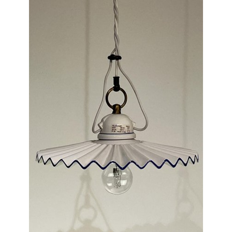 Ceramic and brass suspension lamp by Aldo Bernardi, Italy, 90sPlissetto model, mounts a lamp and 27. Creator Aldo Bernardi Manufacturer Aldo Bernardi Design Period 1990 to 1999 Production Period 1990 to 1999 Country of Manufacture Italy Identifying Marks T