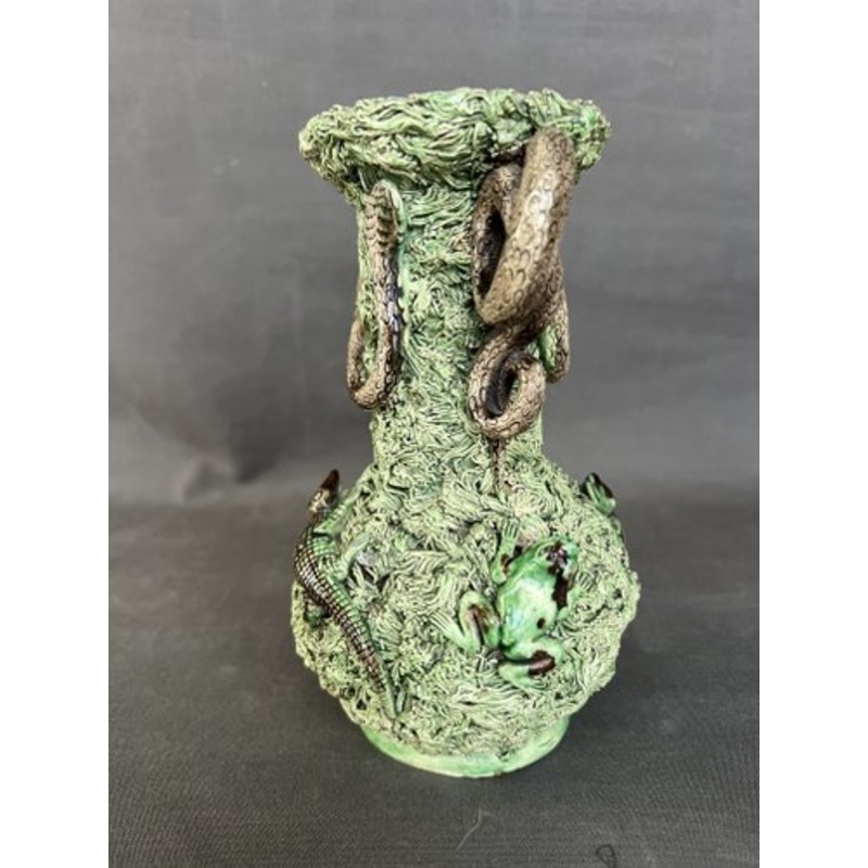 Palissy ceramic vase measuring 18.2 cm. high ,