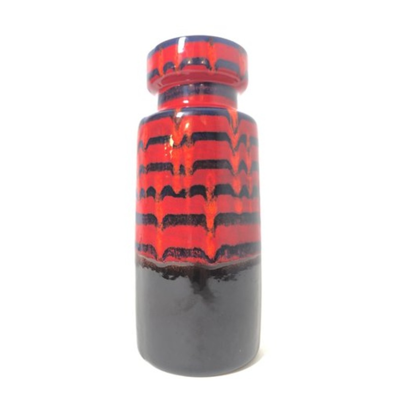 West Germany Scheurich vintage 1970s ceramic vase The vase was made in the 1970s with the model number 517-30 and produced by Scheurich. This original vintage vase is made of ceramic with an abstract illustration in very strong colors of red and black glaz