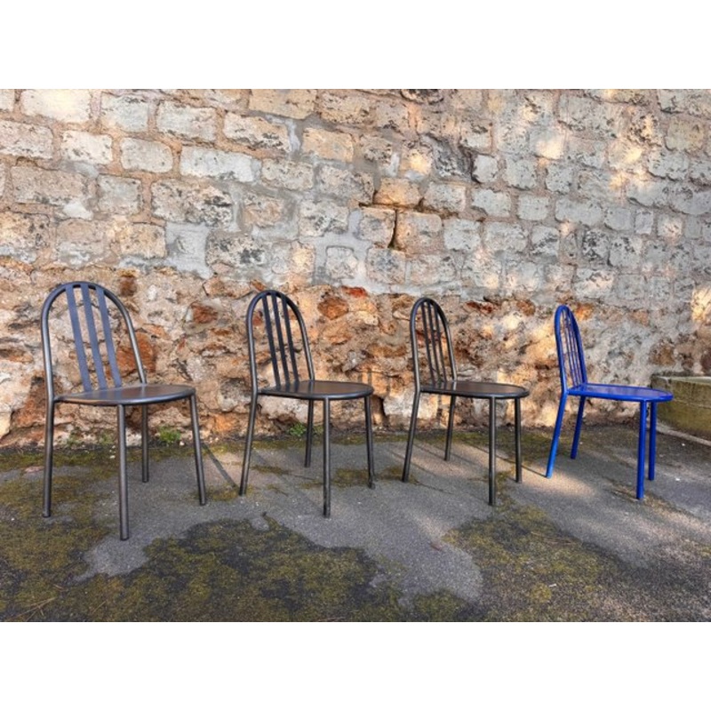 Set of 4 Robert Mallet Stevens chairs ((1886, France - 1945, France).Lacquered steel tube structure - 3 black and 1 blueChairs designed in 1930 for the house of Robert Mallet-Stevens in Paris Creator Robert Mallet-Stevens Manufacturer RMS Design Period 192