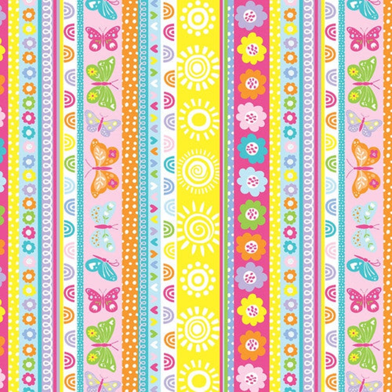 Chasing Rainbows Novelty Stripe in Multi by Emily Dumas for Henry Glass 44 inches wide 100% Cotton Quilting Fabric HG-698-12 Width: 44 inchesMaterial: 100% Cotton Quilting FabricEmily Dumas new collection, Chasing Rainbows, celebrates all things colorful.