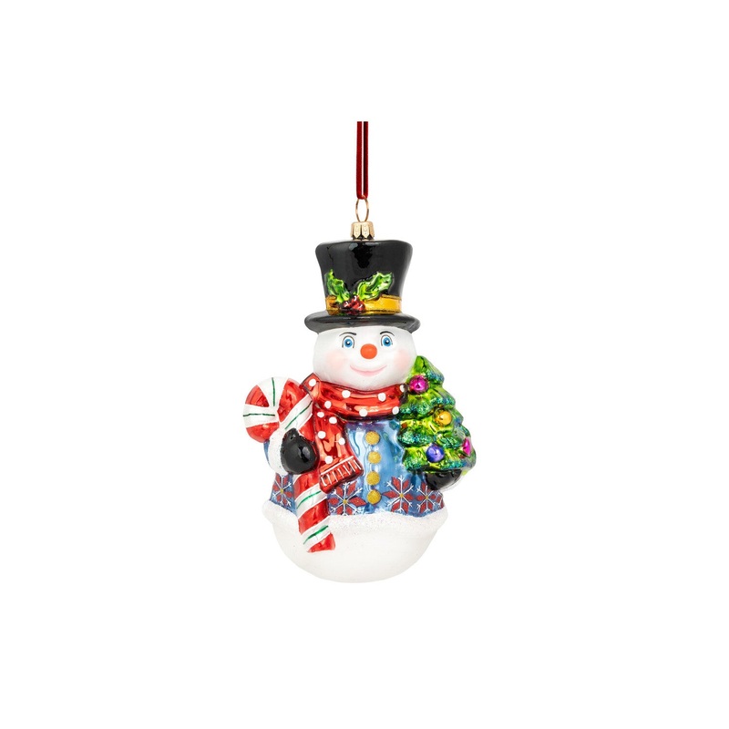 Celebrate the season with the Cheerful Snowman from Candy Cane Lane Ornament, a beautifully hand-crafted treasure from Poland. Each glass piece is mouth-blown, silvered, and hand-painted by skilled artisans using traditional 1800s techniques. This charming