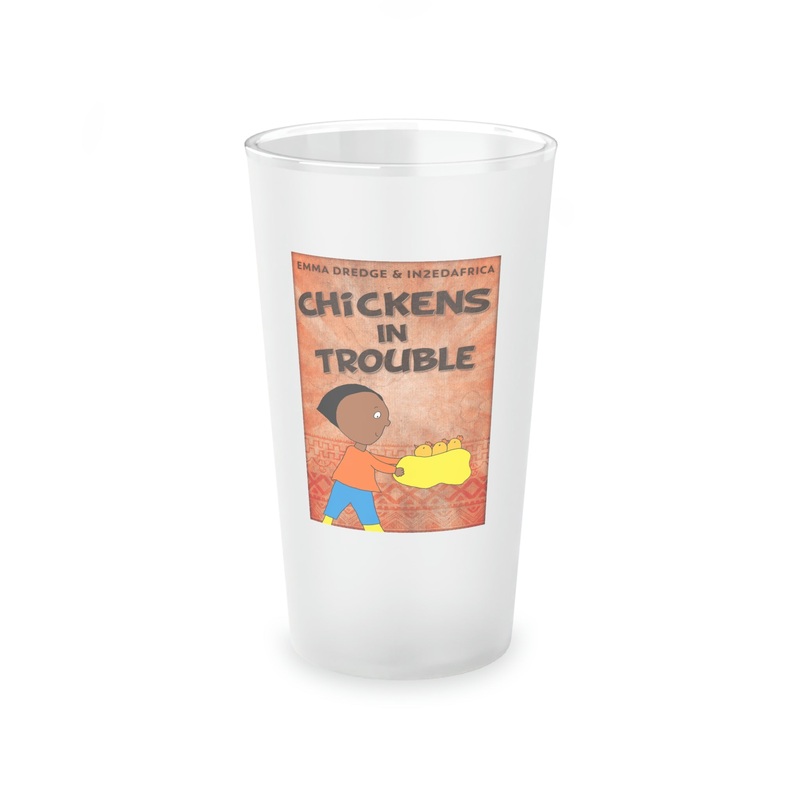 This frosted matte finish pint glass is versatile and dishwasher-safe. The cover art in this pint glass is from Emma Dredge's book, Chickens In Trouble.