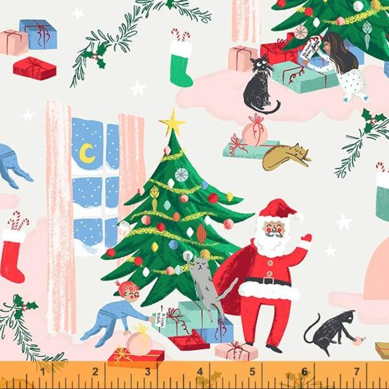 DBWF38375144788Christmas Charms Dylan Mierzwinski 53089-1 Ivory Present Peeking Cotton
