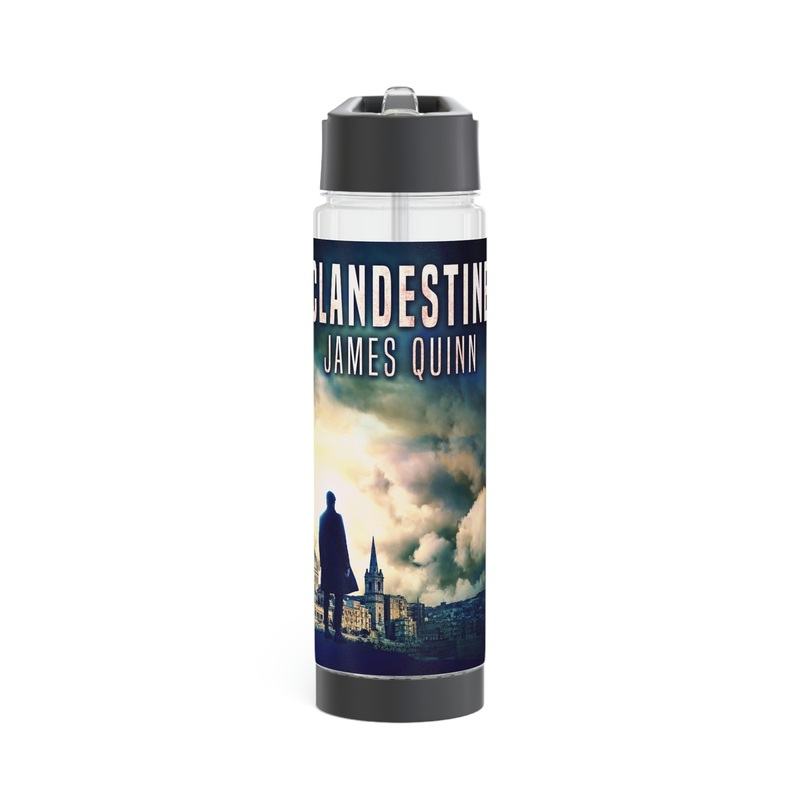 Add flavor and personality to your water with this infuser bottle. Twist the base off to access the infuser and add fruits, tea leaves, or anything you desire to enhance the flavor of your water. On the top, you’ll find a twist-on lid with a flip-top drinking sprout for a seamless drinking experience. This infuser is excellent for using at home, during outdoor excursions, or at the gym as a sports bottle. The cover art in this infuser water bottle is from James Quinn’s book, Clandestine.