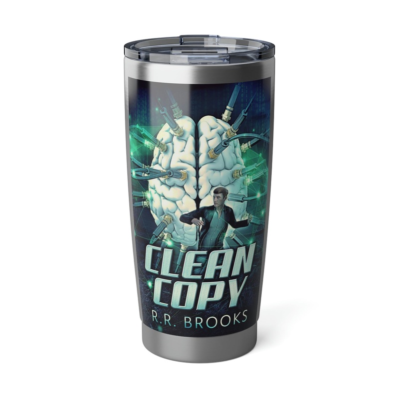 Minimize your plastic footprint with style. This tumbler fits perfectly into car cup holders, and the rubber gasket makes it spill-resistant on bumpier roads. The double-wall insulation makes sure drinks stay at the right temperature until the next pit stop. The cover art in this 20 oz tumbler is from R.R. Brooks’s book, Clean Copy.