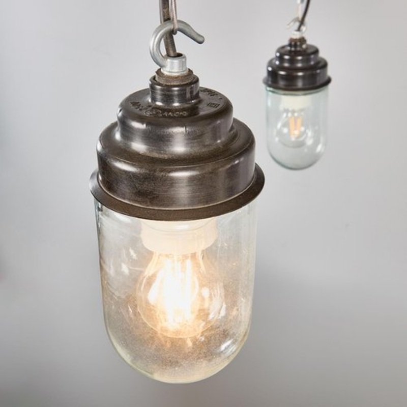 : 1950’s New Old Stock Clear Barrel Pendant Lamps – Good Quantity Available. The gallery tops are original Bakelite (self insulated) and simply screw into the clear glass orb. Each lamp has been cleaned and restored. Listing is for one lamp. Each lamp is individually wired with new cable and cable connectors to BS EN 60598.
