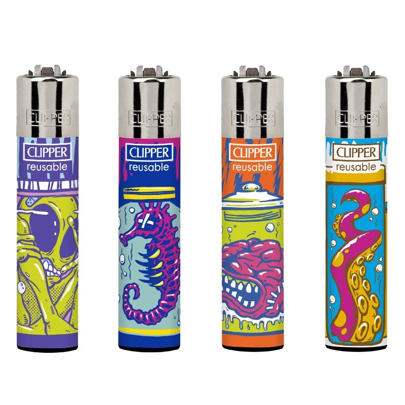 Check out this grotesque and grisley set of monstrous clipper lighters. Choose your favourite specimen or go full psycho and collect the set. History of The Clipper: Clipper has become the world leader and Number 1 consumer brand in refillable lighters. Th