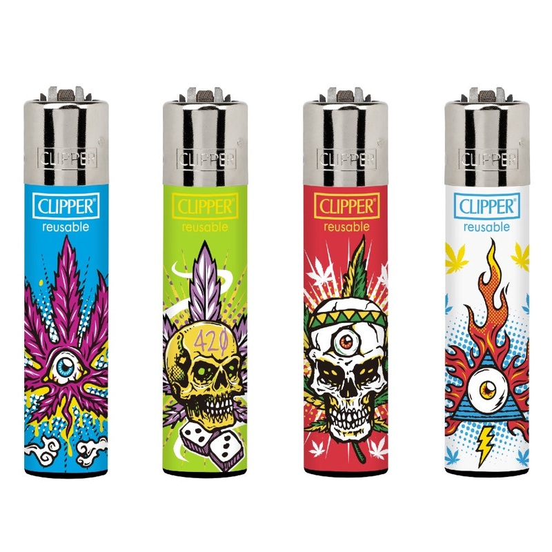 Feast your eyes on these psycho leaves Clippers with some skull busting artwork. Available individually or as a complete set. History of The Clipper: Clipper has become the world leader and Number 1 consumer brand in refillable lighters. This is primarily