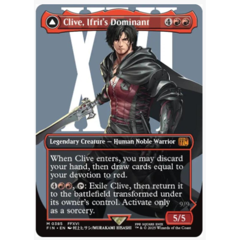 When Clive enters, you may discard your hand, then draw cards equal to your devotion to red.4RR : Exile Clive, then return it to the battlefield transformed under its owner's control. Activate only as a sorcery.Ifrit, Warden of InfernoLegendary Enchantment