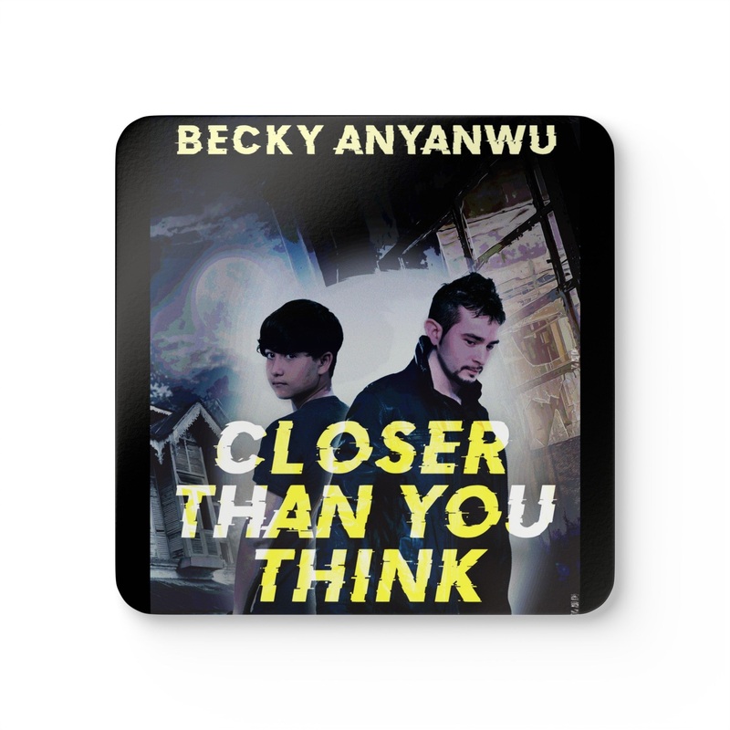 These coasters are made with a high-gloss top and feature a cork back to prevent sliding, and each order comes with a set of four coasters. The cover art in these coasters is from Becky Anyanwu’s book, Closer Than You Think.