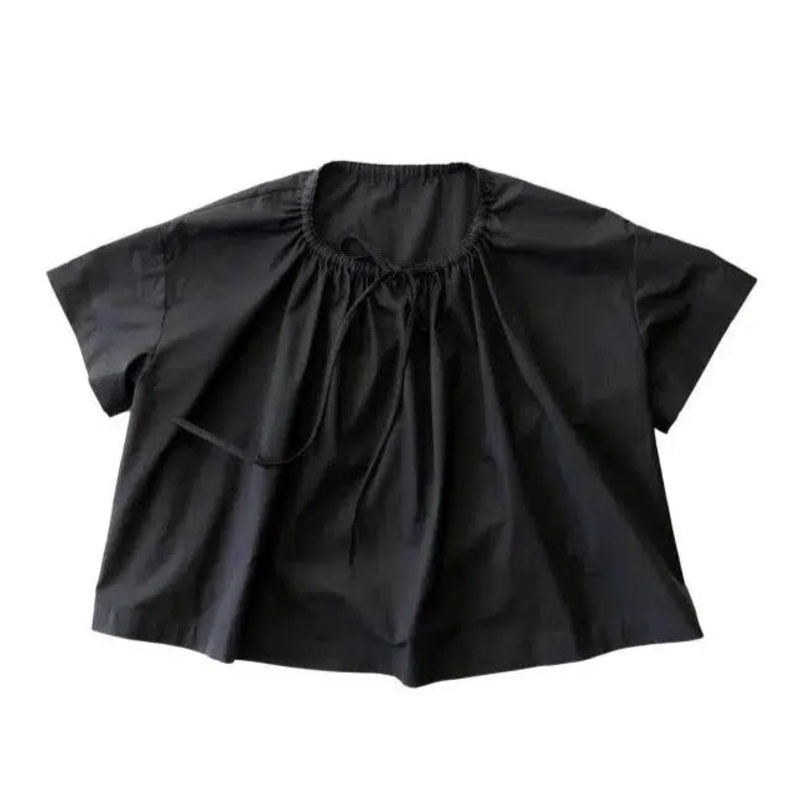 A simple t-shaped dress or top with a gathered drawstring neckline that can be adjusted to sit at your desired height. Make it sleeveless or with sleeves, structured and architectural in poplin or soft and relaxed in linen.