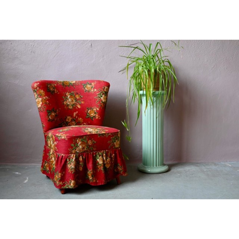 The cocktail armchair is a design classic from the 50s and 60s. Taking the shapes and uses of the toad chair, it is a reinvention! Pretty shapes, a small size and a small footprint will make it the perfect companion for small spaces or a bedroom. Resolutely vintage, this model is adorned with a floral red fabric, as touching as it is poetic.