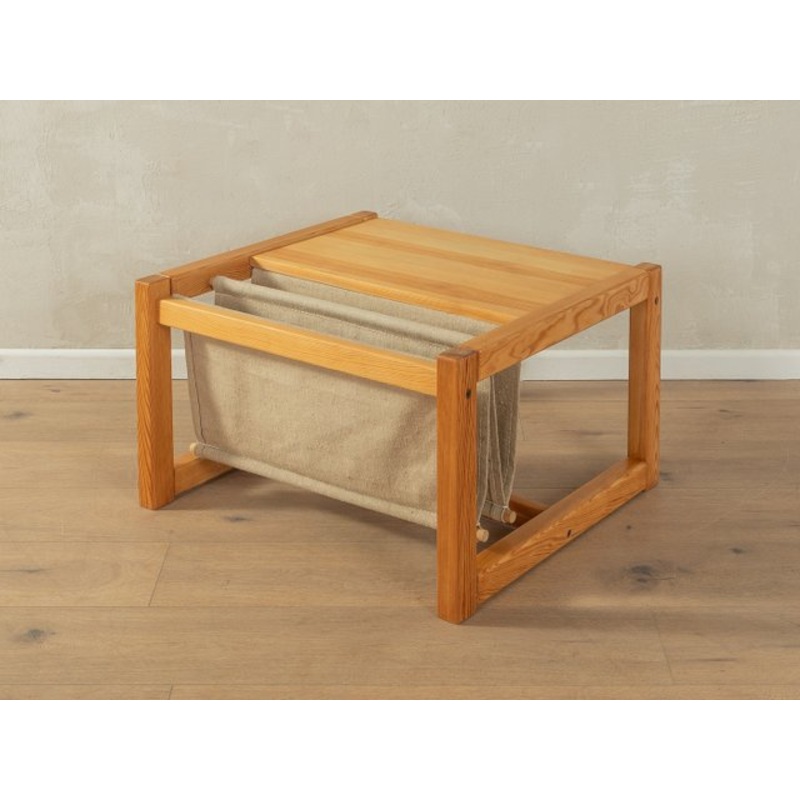 Wonderful coffee table by Karin Mobring for IKEA from the 1970s. Solid spruce frame with two linen magazine compartments.Quality features:very good workmanshiphigh quality materialsMade in Sweden. Design: Karin Mobring, manufacturer: IKEA Creator Karin Mob