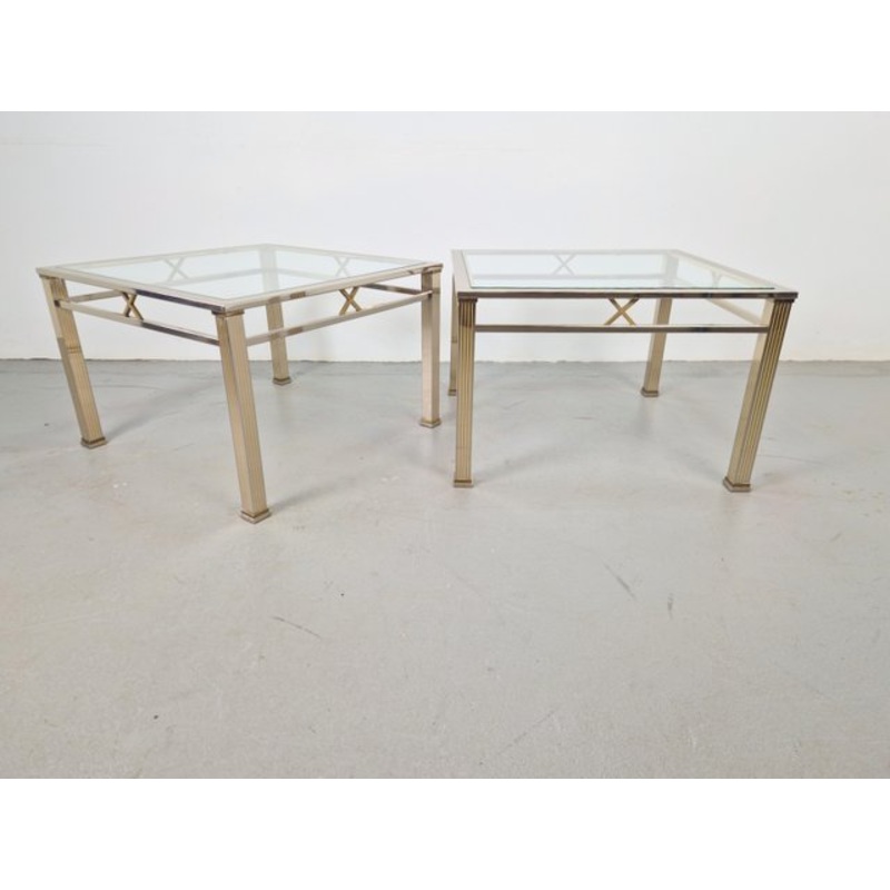 Set 2 Vintage coffee table chrome brass Fratelli Orsenigo 70The coffee table made by Fratelli Orsenigo, Italy dates from the 70s. The surfaces are chromed and brass.It is preserved in very good condition.Dimensions: Height 44 cm, Width 66 cm, Depth 66 cm M