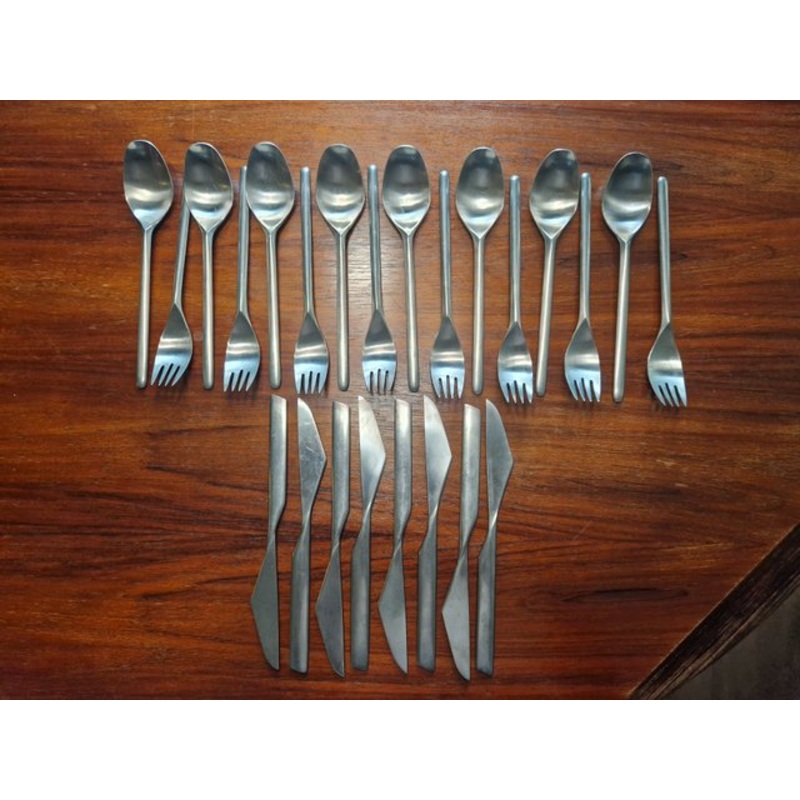 24-piece cutlery (8 knives, 8 forks, 8 spoons) made of stainless steel.The cutlery comes from Rosenthal (signed).The Compositon series was designed by Tapio Wirkkala.Very nice condition, one knife tip is slightly bent. Creator Tapio Wirkkala Manufacturer R