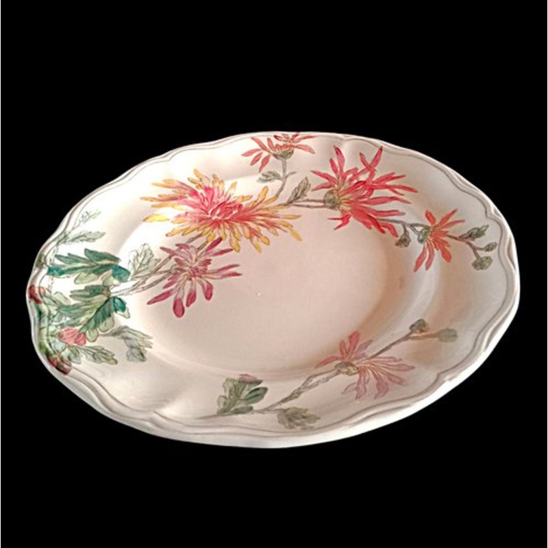 splendid compotier decorated with sumptuous dahlias, very fresh colors, perfect condition, in the purest tradition of the 19th century Terre de Fer and stamped on the back with an intaglio stamp from the great French manufacturer Longchamp Creator Longcham