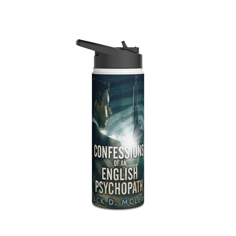Quench your thirst in style with this 18oz stainless steel water bottle featuring a double-wall stainless steel build that keeps your drinks frosty for 24h and soothingly hot for 12h. This BPA-free, steel water bottle comes with a twist-on lid for easy sipping, making it excellent for daily use at work, at college, in the car, and beyond. The cover art in this water bottle is from Jack D. McLean’s book, Confessions Of An English Psychopath.