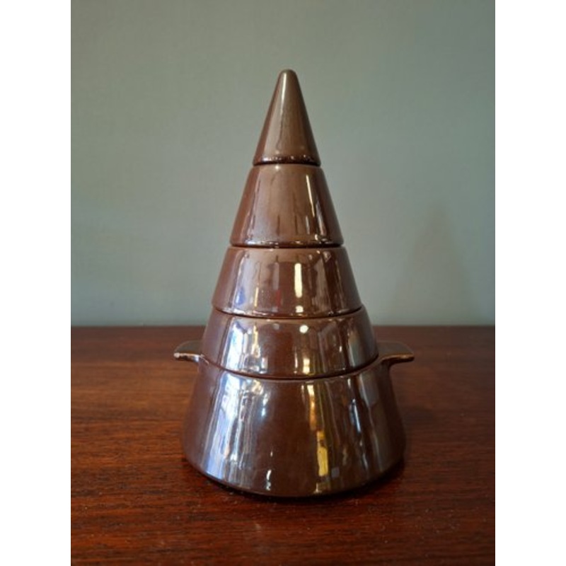 Between 1968 and 1970, the partnership between the Pierre Cardin brand and the creativity of Ambrogio Pozzi gave rise to two projects based on the concept of assembly and stackability, which soon became icons of modern design: it was the Ensemble project, in glazed earthenware in various colors, and the subsequent Cone Set.
