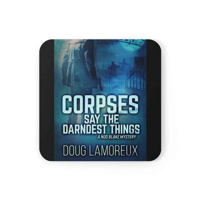 These coasters are made with a high-gloss top and feature a cork back to prevent sliding, and each order comes with a set of four coasters. The cover art in these coasters is from Doug Lamoreux’s book, Corpses Say The Darndest Things.