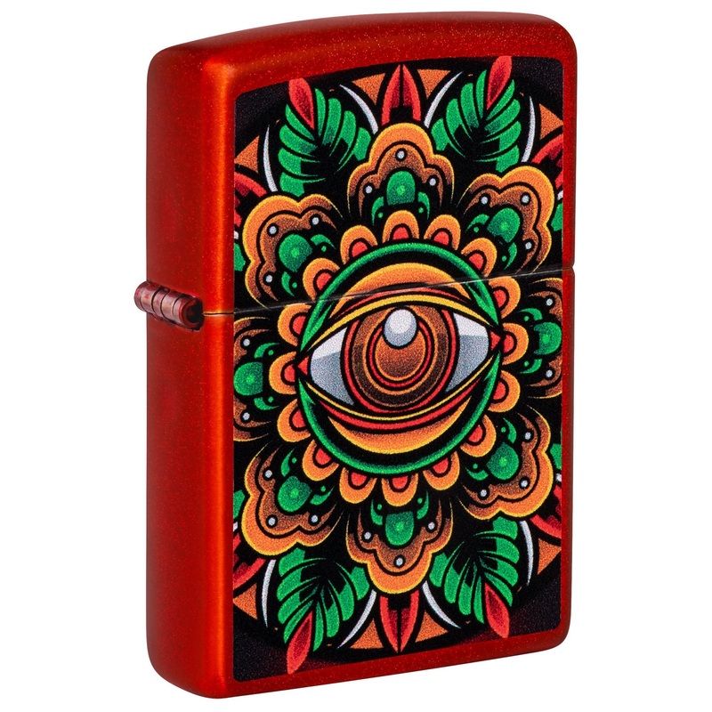 An all-seeing eye peers from the center of this Color Image design, which forms a mesmerizing mandala across the surface of the fiery Metallic Red lighter. Comes packaged in a gift box. For optimal performance, fill with Zippo lighter fuel.