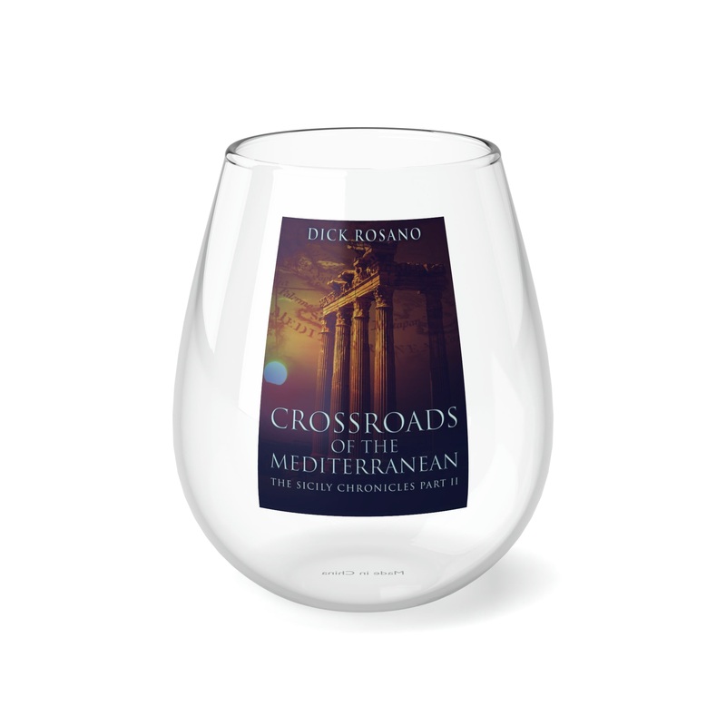 Whether it’s weddings, parties, or beautiful evenings with friends and family, this stemless glass wine fits right in. With its sleek design, each glass holds 11.75oz of your favorite wine. The cover art in this wine glass is from Dick Rosano’s book, Crossroads Of The Mediterranean.