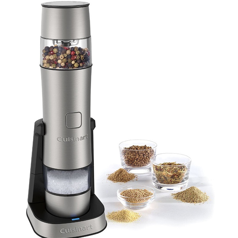 The Cuisinart Rechargeable Salt, Pepper and Spice Mill is a fast and stylish way to spice up any meal!Our unique design boasts two grinding containers, letting you grind two different spices or salts with one button.With a grinding container on the top and