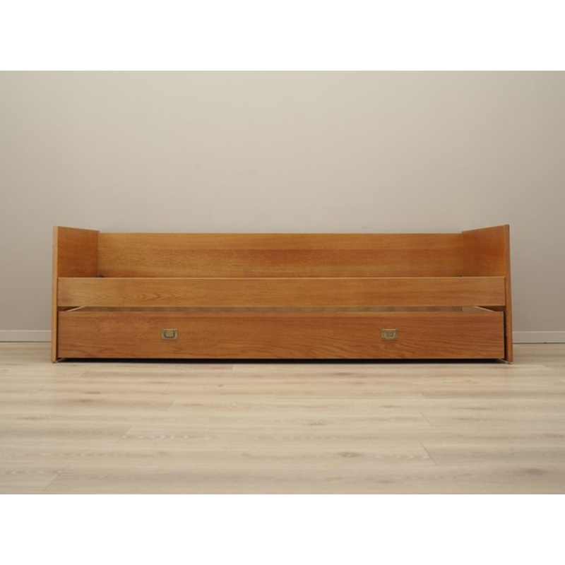 The bed was made in the 1970s, Danish production.The structure is covered with ash veneer. Surface after refreshing. The bed comes with a lattenrost made of beech wood. An additional feature is the bedding drawer.Condition: Surface of the bed after refresh