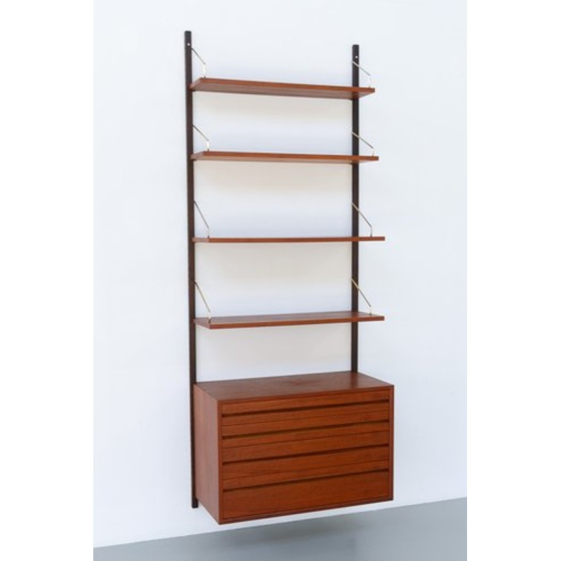 Danish Modern 1-Bay Modular Teak Wall Unit by Poul Cadovius for Cado, 1960s.Mid-Century Modern 1 bay shelving system model Royal. This is an original vintage floating bookcase designed in 1948 by Danish architect Poul Cadovius. Cadovius had the revolutiona