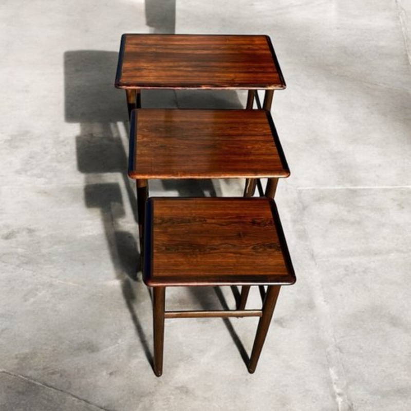 Vintage Danish Mid-Century Nesting Tables - 1960sAdd classic Danish mid-century style to your space with this set of three rosewood nesting tables from the 1960s. Beautifully crafted with rich wood grain, these tables feature clean lines and tapered legs,