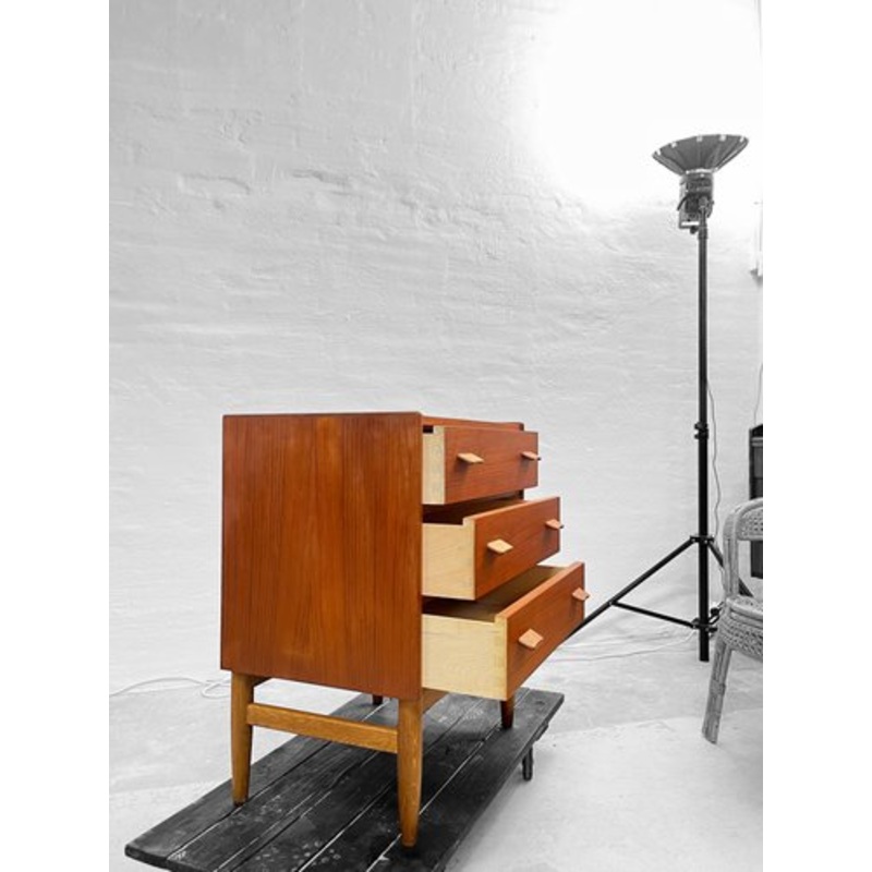 Mid-Century Teak Chest of Drawers attributed Carl Aage Skov for Munch Mbler, 1950sElegant petite chest of drawers designed by Carl Aage Skov for Munch Mbler in the 1950s. A beautiful example of classic mid-century Danish craftsmanship.Dimensions: H 74 cm W