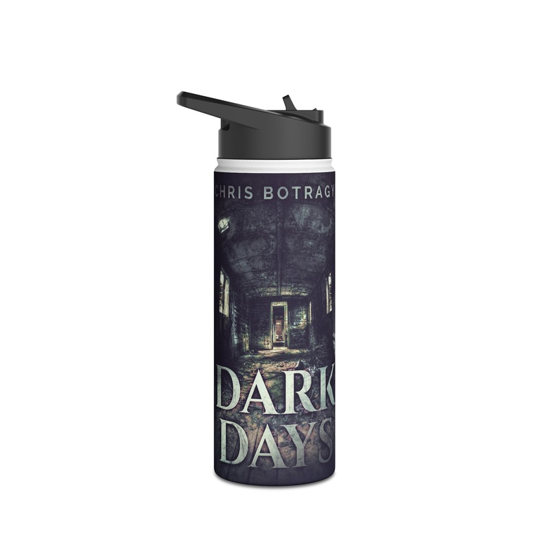 Quench your thirst in style with this 18oz stainless steel water bottle featuring a double-wall stainless steel build that keeps your drinks frosty for 24h and soothingly hot for 12h. This BPA-free, steel water bottle comes with a twist-on lid for easy sipping, making it excellent for daily use at work, at college, in the car, and beyond. The cover art in this water bottle is from Chris Botragyi’s book, Dark Days.