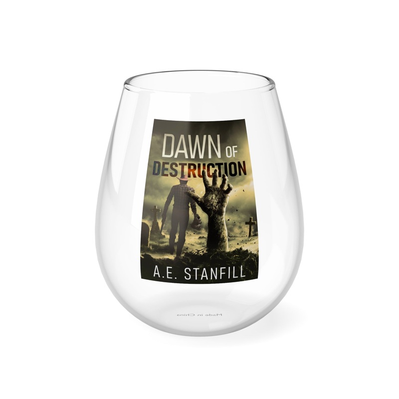 Whether it’s weddings, parties, or beautiful evenings with friends and family, this stemless glass wine fits right in. With its sleek design, each glass holds 11.75oz of your favorite wine. The cover art in this wine glass is from A.E. Stanfill’s book, Dawn Of Destruction.