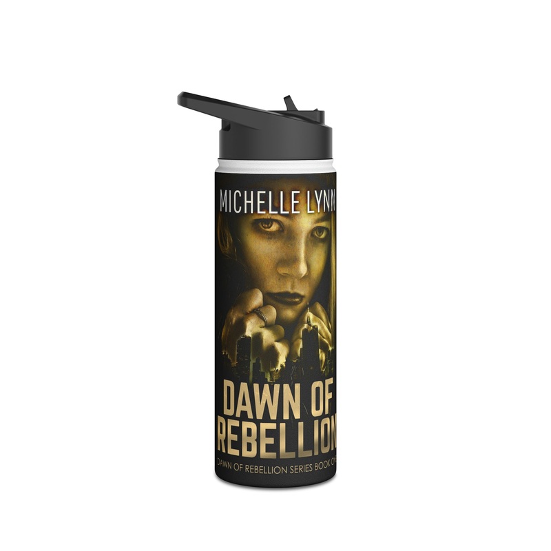 Quench your thirst in style with this 18oz stainless steel water bottle featuring a double-wall stainless steel build that keeps your drinks frosty for 24h and soothingly hot for 12h. This BPA-free, steel water bottle comes with a twist-on lid for easy sipping, making it excellent for daily use at work, at college, in the car, and beyond. The cover art in this water bottle is from Michelle Lynn’s book, Dawn of Rebellion.