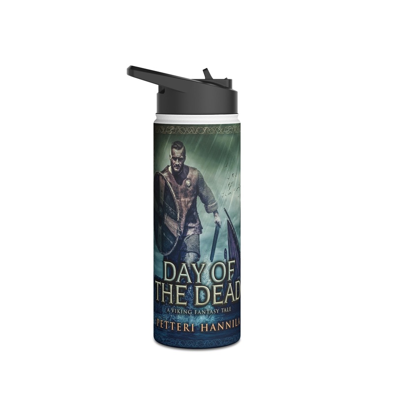 Quench your thirst in style with this 18oz stainless steel water bottle featuring a double-wall stainless steel build that keeps your drinks frosty for 24h and soothingly hot for 12h. This BPA-free, steel water bottle comes with a twist-on lid for easy sipping, making it excellent for daily use at work, at college, in the car, and beyond. The cover art in this water bottle is from Petteri Hannila’s book, Day of the Dead.