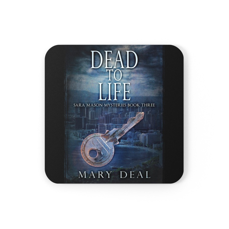 These coasters are made with a high-gloss top and feature a cork back to prevent sliding, and each order comes with a set of four coasters. The cover art in these coasters is from Mary Deal's book, Dead To Life.
