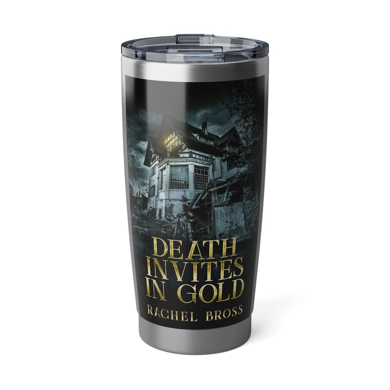 Minimize your plastic footprint with style. This tumbler fits perfectly into car cup holders, and the rubber gasket makes it spill-resistant on bumpier roads. The double-wall insulation makes sure drinks stay at the right temperature until the next pit stop. The cover art in this 20 oz tumbler is from Rachel Bross’s book, Death Invites In Gold.