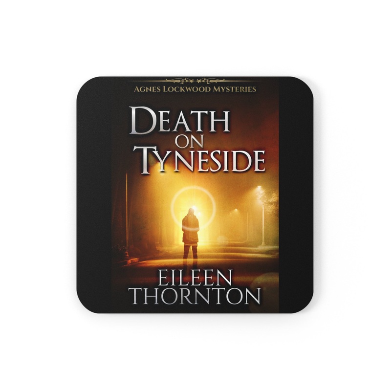 These coasters are made with a high-gloss top and feature a cork back to prevent sliding, and each order comes with a set of four coasters. The cover art in these coasters is from Eileen Thornton’s book, Death on Tyneside.
