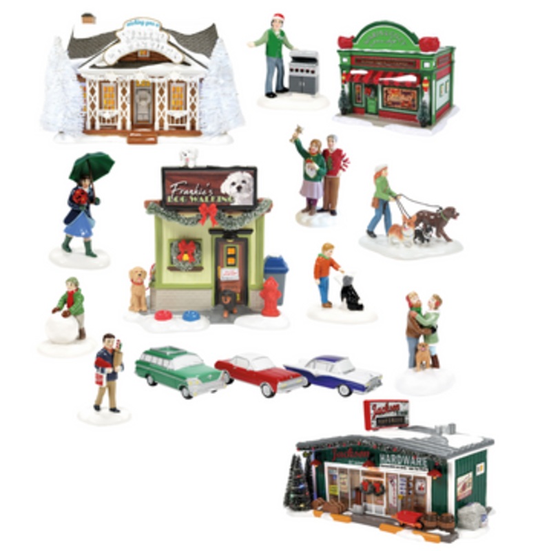 Our Snow Village set is the perfect Christmas time scene! This set features a white snow covered house, a yarn store, and a dog walking shop! Figures of people doing various things like BBQing, making snowballs, walking pooches, and waving to each other give this set a breath of life!