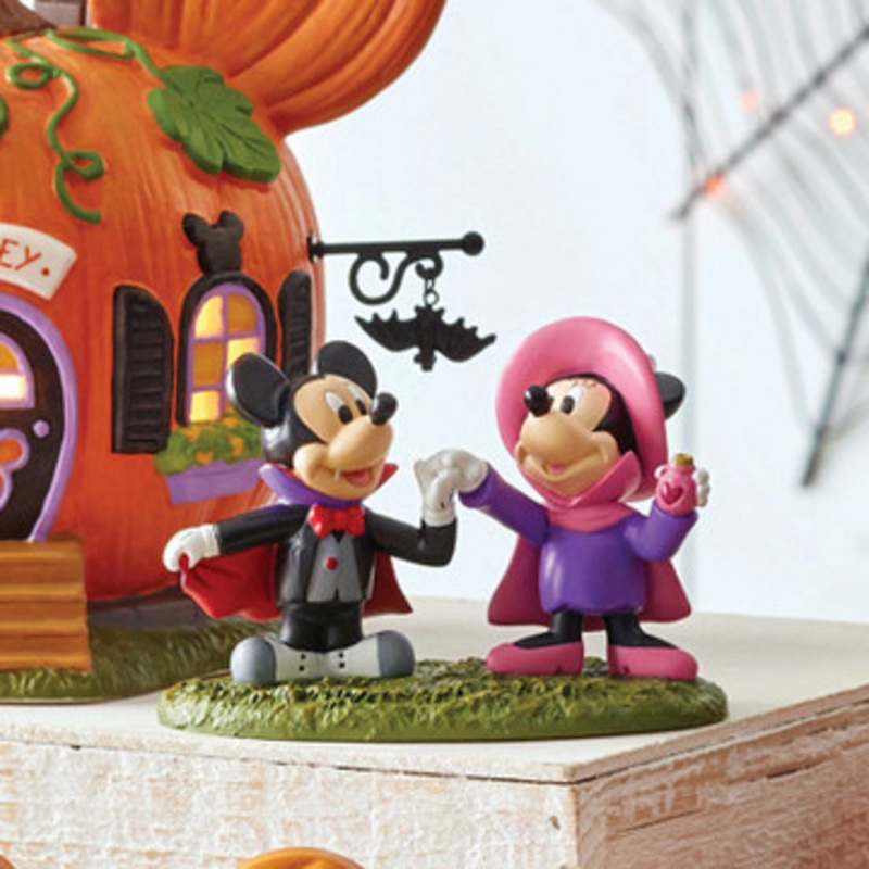 Who’s ready for trick or treating?! Minnie and Mickey are! This figure features Mickey dressed up as a vampire and Minnie in a cute pink and purple witch costume! They detailedtheir costumes so well- Mickey has tiny vampire fangs and Minnie has a bottle of potions in her hand!Introduced January 2021.Made by Department 56.Made of stone powder.Dimensions:2.375 in H x 2.75 in W x 3.75 in L.Item #: 6007728