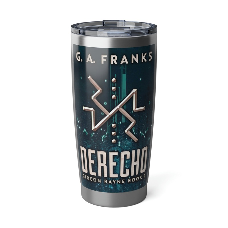 Minimize your plastic footprint with style. This tumbler fits perfectly into car cup holders, and the rubber gasket makes it spill-resistant on bumpier roads. The double-wall insulation makes sure drinks stay at the right temperature until the next pit stop. The cover art in this 20 oz tumbler is from G.A. Franks’s book, Derecho.